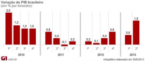 Em entrevista ao G1 na semana passada, Mantega disse que a expectativa de crescimento para este ano foi reduzida de 3% para 2,5%. Já a previsão de PIB para 2014 foi revisada de 4,5% para 4%.