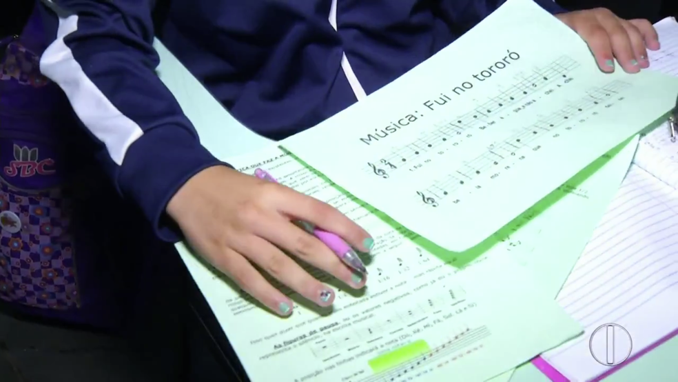 De acordo com professora, cada nota musical é formada por uma fração e isso ajuda a formar o compasso e o ritmo das músicas (Foto: Reprodução / Inter TV)