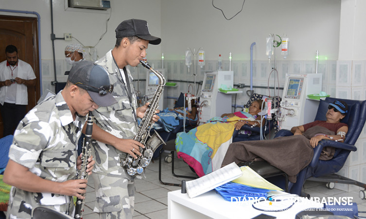 “A música é muito boa. Ajuda a distrair”. Essas são as palavras de agradecimento da paciente Neuza Brito, de 72 anos, e que há quatro anos faz sessões de hemodiálise. Ao som dos clarinetes e um saxofone, as melodias vão ganhando os cantos da sala da Clínica de Hemodiálise que funciona na Santa Casa de Corumbá.
