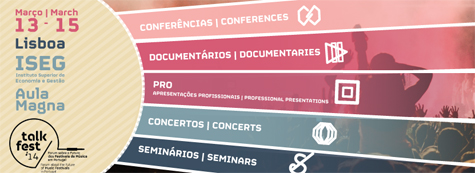 O Talkfest – Forum sobre o Futuro dos Festivais de Música em Portugal terá a sua 3ª edição de 13 a 15 de Março de 2014. O futuro dos festivais de música volta a ser discutido numa edição que irá contar com novas vertentes, decorrendo em Lisboa entre o ISEG e a Reitoria da Universidade de Lisboa (Aula Magna e Salão nobre).